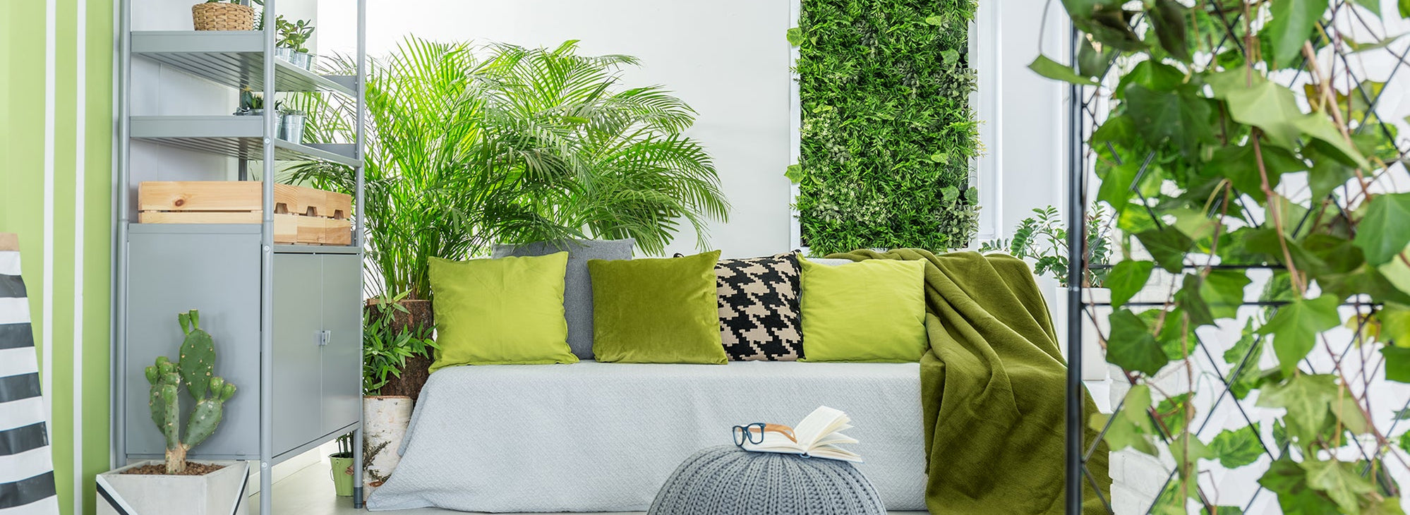filled with artificial plants can transform a blank wall into a vibrant backdrop.