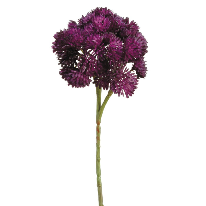 Stunningly beautiful, this 12" Sedum Artificial Flower Stem in Eggplant brings low, clustered blooms and succulent-like texture that are perfect for modern, earthy or contemporary designs. Use this stem in mixed arrangements, dish gardens, succulent-style centerpieces or everyday displays, either on its own or combined with other artificial flowers and foliage for grounded, textural looks.