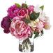 13"Hx13"W Silk Peony Flower Arrangement w/Glass Vase -Pink/Fuchsia