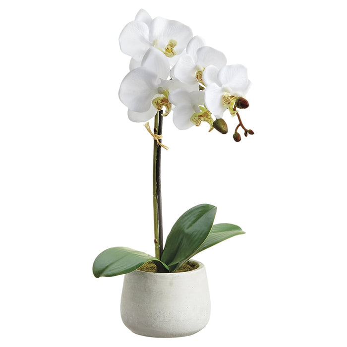 Stunningly beautiful, this 16" Silk Phalaenopsis Orchid Flower Arrangement with Cement Pot in White will add a little modern touch to any room. These exotic artificial orchid flowers are a symbol of love, beauty, and innocence in most cultures around the world. Beautifully made, place this artificial orchid arrangement on your reception table to greet your guests. Or settle it with other modern decor on your kitchen island or dining room table