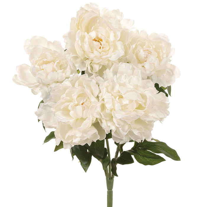 19.5" Silk Peony Flower Bush -White (Pack of 6)