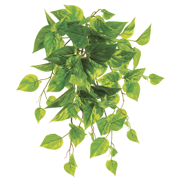 19" Outdoor UV-Resistant PVC IFR Hanging Artificial Pothos Leaf Plant -Green/White (Pack of 12)