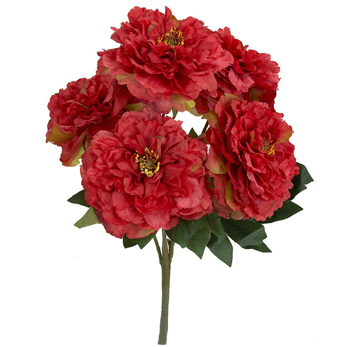 21" Peony Silk Flower Bush -Red (Pack of 6)