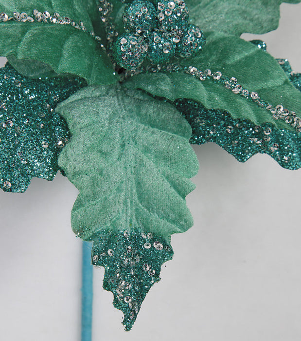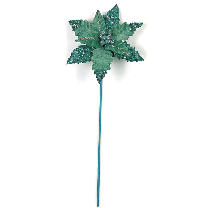 23" Glittered Silk Poinsettia Flower Stem -Teal (Pack of 24)