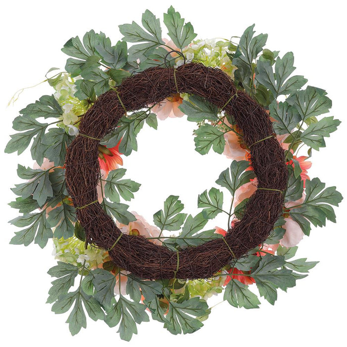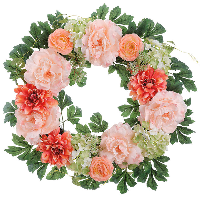 24" Peony & Hydrangea Silk Flower Wreath -Peach/Green (Pack of 2)