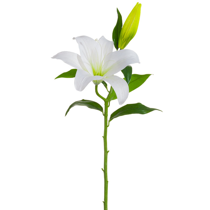 Stunningly beautiful, this 26" Large Silk Casablanca Lily Flower Stem in White is perfect for creating strong focal points and elegant lines in your arrangements. Use this classic faux lily bloom in mixed bouquets, tall vases, formal centerpieces or event décor, either on its own or combined with greenery and other silk flowers for refined, polished designs.