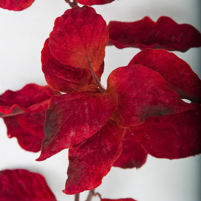 Stunningly beautiful, this 27" Artificial Velvet Snow Berry Leaf Stem in Red/Black will never need a drop of water or pruning. These Christmas stems are sure to accomplish the crafting of something beautiful and head-turning, as they would serve as excellent addon to centerpieces, garlands, candle rings and wreaths, bringing extra color and richness to your holly-inspired decorations. And... You'll get to cherish it for a lifetime!