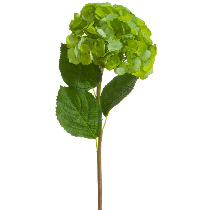 Stunningly beautiful, this 28" Silk Hydrangea Flower Stem in Green is perfect for adding fullness and softness to your designs with a single stem. Use this generous faux bloom as a focal flower or lush filler in mixed bouquets, wedding florals, centerpieces or standalone displays, either on its own or combined with greenery and other silk flowers for a rich, abundant look.