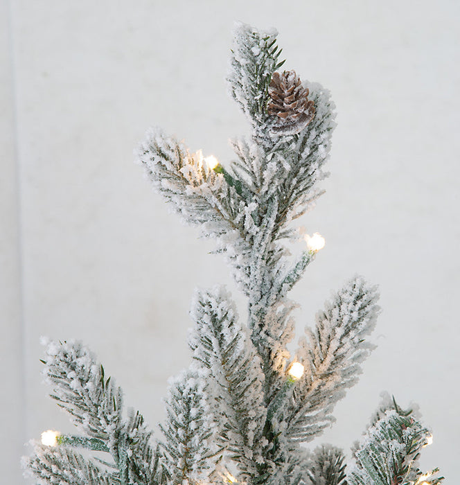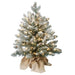 2'Hx18"W PE Flocked Spruce Artificial Table Christmas Tree w/Burlap Base, Micro LED Pre-Lit -White/Green