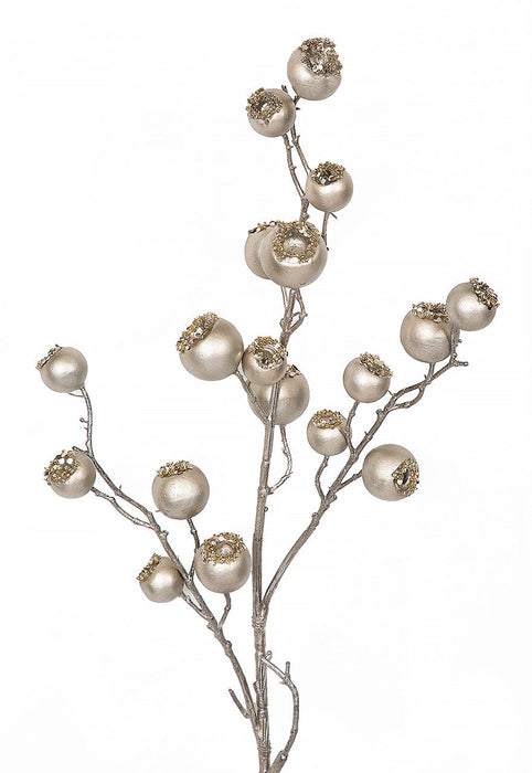 30" Metallic & Beaded Artificial Guava Stem -Champagne/Gold (Pack of 12)