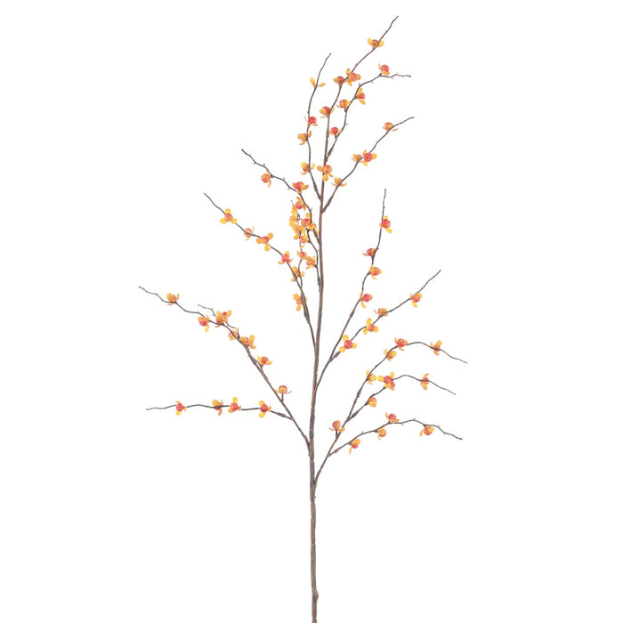 Stunningly beautiful, this 32.5" Artificial Bittersweet Berry Stem in Orange/Yellow will never need a drop of water or pruning. Use these artificial fall berry stems alone or mix them together with other fall floral to create a unique artificial fall centerpiece. These artificial autumn berries can easily be used for your home decor ideas and become the showpiece for your living room. This artificial berry stem is just one of our many artificial berry stems online. And... You'll get to cherish it for a lifetime!