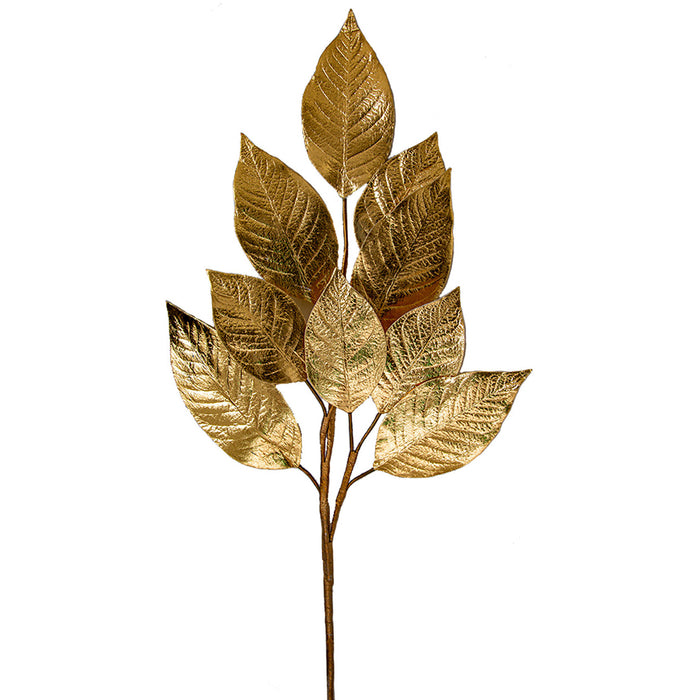 34" Metallic Artificial Magnolia Leaf Stem -Gold (Pack of 12)