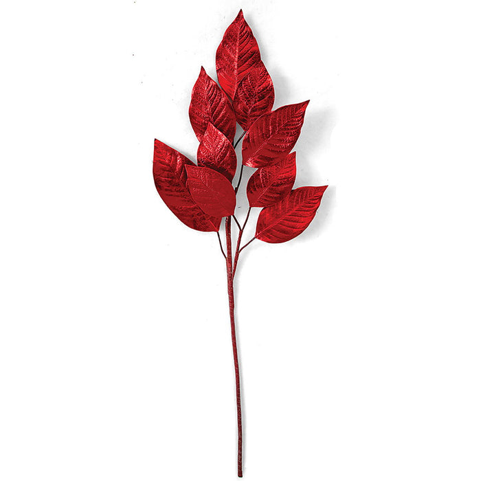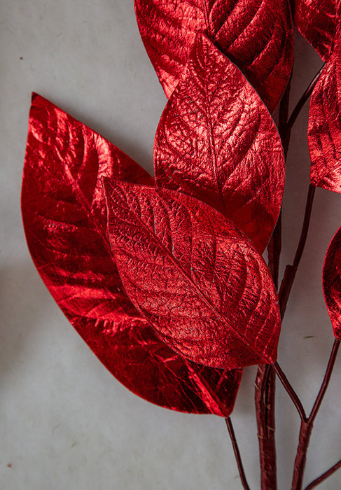 34" Metallic Artificial Magnolia Leaf Stem -Red (Pack of 12)