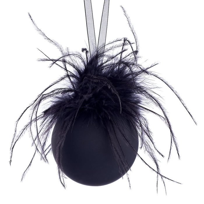 4.25" Halloween Glass Ball Ornament With Fur -Black (Pack of 12)