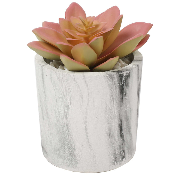 Stunningly beautiful, this 4.75" Set Of Assorted Succulent Artificial Plants with Fake Marble Pots in Green/Burgundy would look amazing displayed anywhere in your home. Infuse a gorgeous summery vibe into the aesthetic of your residence or office with this stunningly striking faux succulent plant. Exquisitely designed with only the finest quality materials and with painstaking attention to detail, this beautiful creation looks so natural that folks will think that it is real. And thanks to it's natural realism, you can thoroughly enjoy the enhancement it'll bring to any space without the need of maintaining it at all. A beautiful realistic plant that is timeless.
