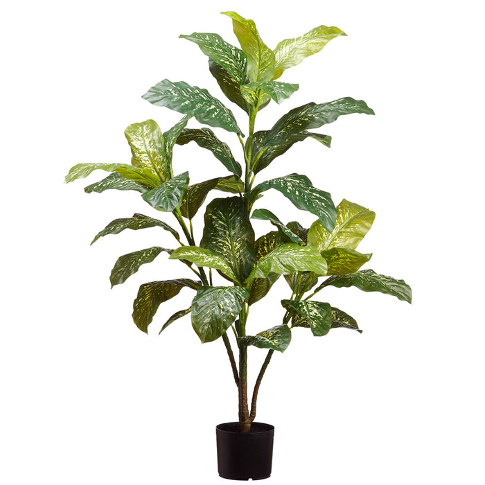 4'2" Silk Dieffenbachia Plant w/Plastic Pot -Green/Cream (Pack of 4)