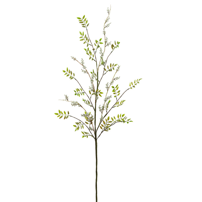 44" Artificial Plastic Leaf & Berry Stem -Cream/Green (Pack of 6)