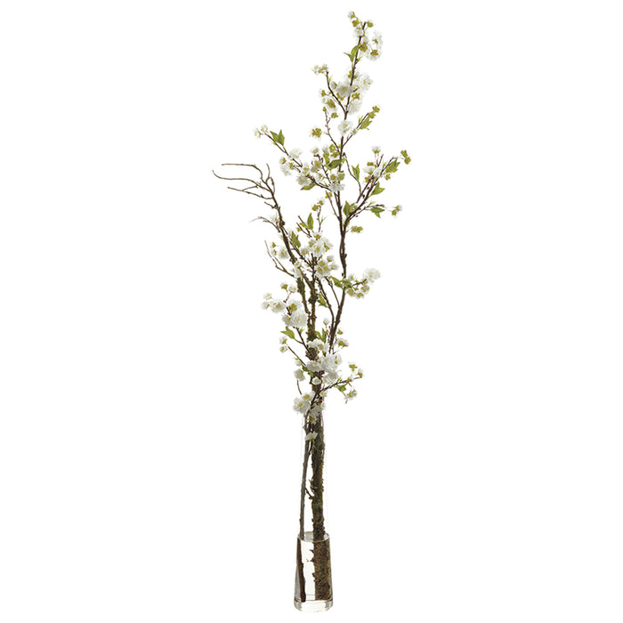 Stunningly beautiful, this 52"Hx20"W Silk Cherry Blossom Flower Arrangement with Glass Vase in White will brighten up any room of your house. Resembling fresh cut spring flower stems, this beautiful faux flower arrangement with bursting colors is the perfect size to nestle into just about anywhere. Have spring flowers year round as this artificial flowers are maintenance free and never need a drop of water.