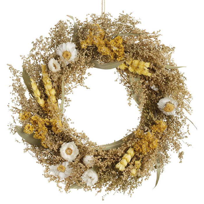 6.5" Preserved Daisy & Yarrow Flower Wreath -Yellow/White