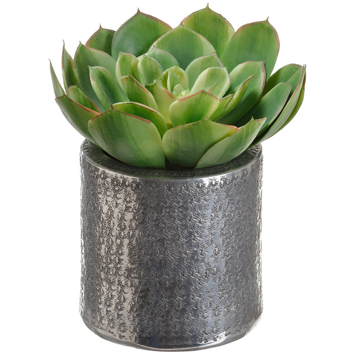 8" Artificial Echeveria Succulent Plant w/Aluminum Pot -2 Tone Green