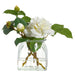 8"Hx10"W Camelia Silk Flower Arrangement w/Glass Vase -White