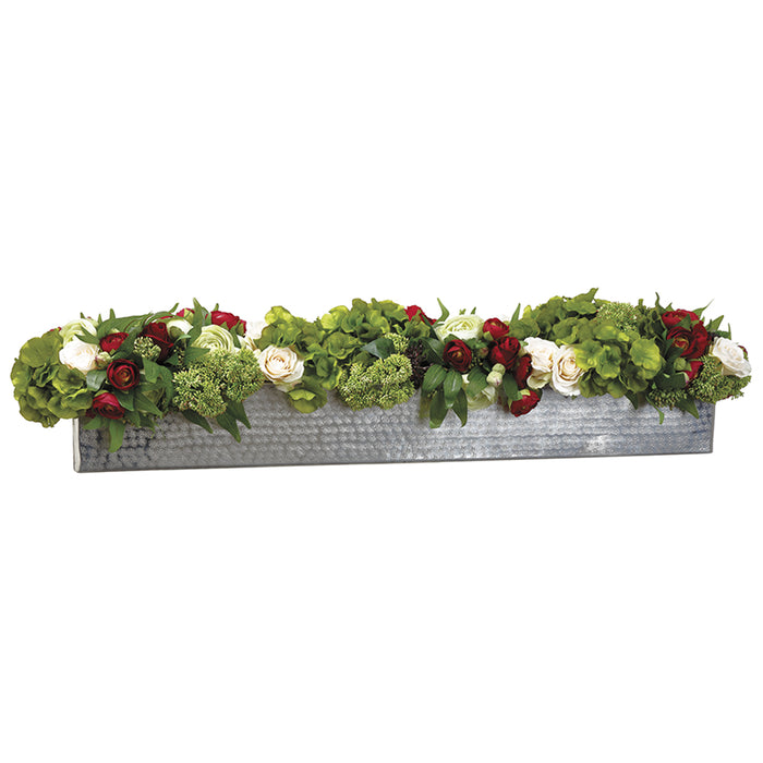 9"Hx41"W Silk Rose, Ranunculus & Sedum Flower Arrangement w/Pot -Green/Red